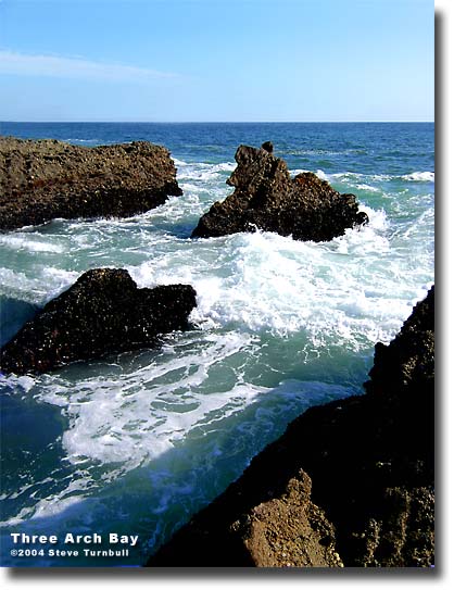 Welcome to Three Arch BayThree Arch Bay, located along the rugged coast of Southern California just south of Laguna Beach, is a place of peace and beauty that has sheltered our families, soothed our souls, and nurtured our love of the mighty Pacific Ocean for generations. We are a very close-knit community of many different types of people - businessmen, artists, doctors, musicians, lawyers, judges, movie stars, surfers, poets and priests - who all share in a love of sun, sand, family and life. Three Arch Bay is a seaside village chock full o' Grandparents, Moms, Dads, kids, dogs and cats, who all take joy in our blessed surroundings, are generous to our neighbors, and accept each other as equals and friends. Take a quick tour in the history and lore of Three Arch